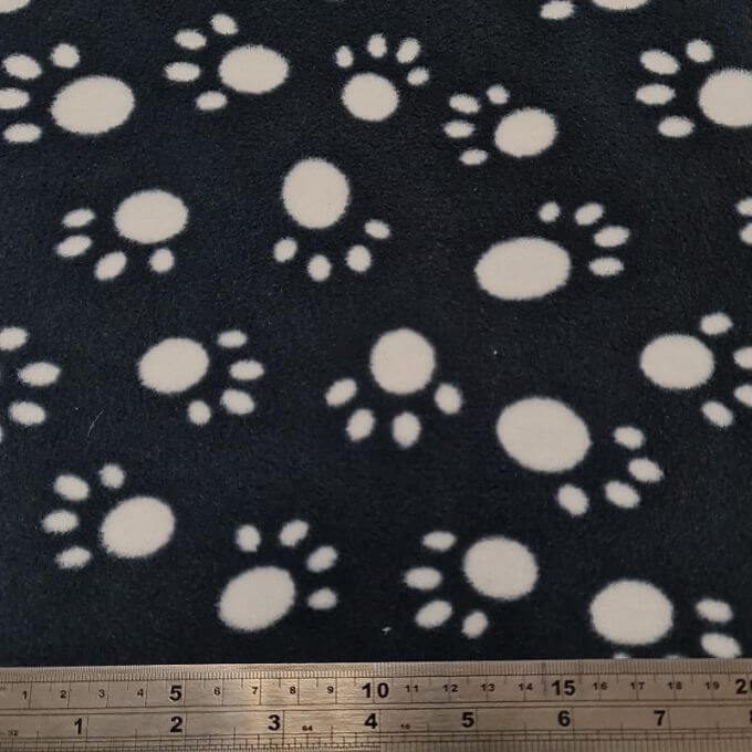 Fleece And Fur - Patterned Fleece - Paw Prints White on Black