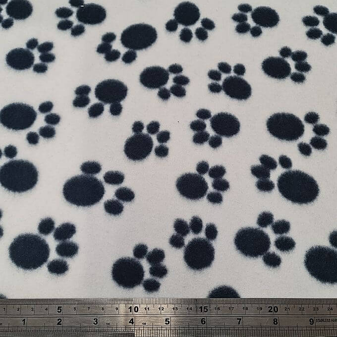 Fleece And Fur - Patterned Fleece - Paw Prints Black on White