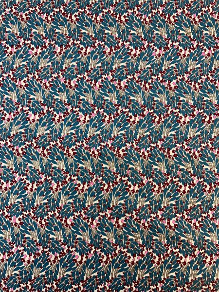 Pure Cotton - Cotton Lawn Prints - Floral Stems Teal and Burgundy Light