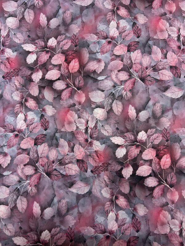 Pure Cotton - Cotton Lawn Prints - Pink and Grey Leaves