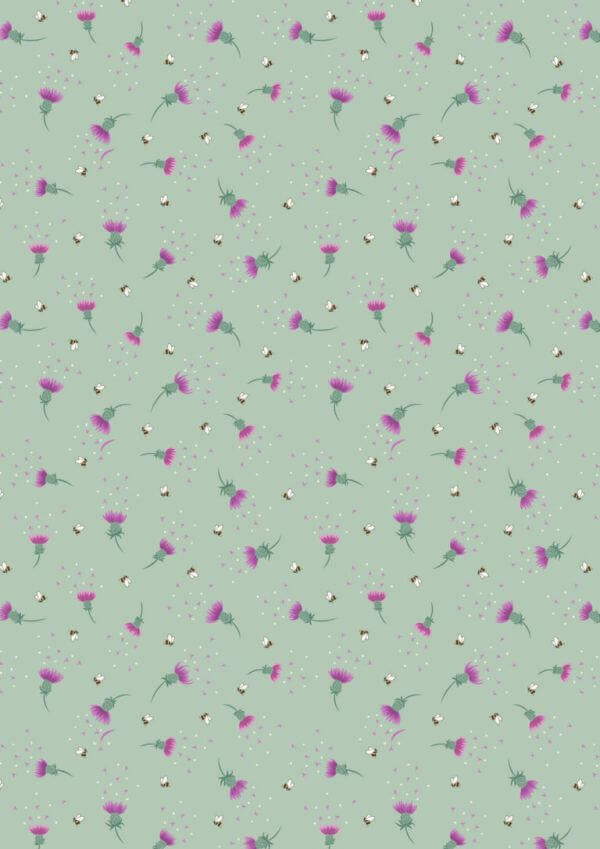 Pure Cotton - Craft A Celtic Summer - Bee thistle on sage green - A988C