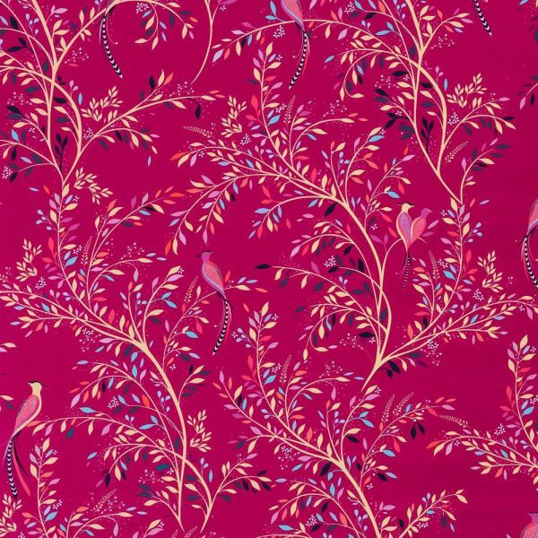 Give your interior the ultimate injection of colour with this Birds of Paradise Fuchsia Velvet Fabric. Featuring elegant songbirds perched within a confetti of sweeping leaves, this sumptuous velvet fabric is guaranteed to add a touch of sophistication and charm to your space. Ideal for curtains, cushions, lampshades and much more.