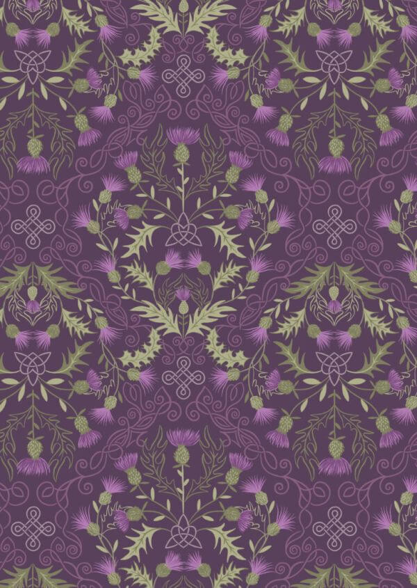 Pure Cotton - Flannel Prints - Thistle on Dark Purple F541C